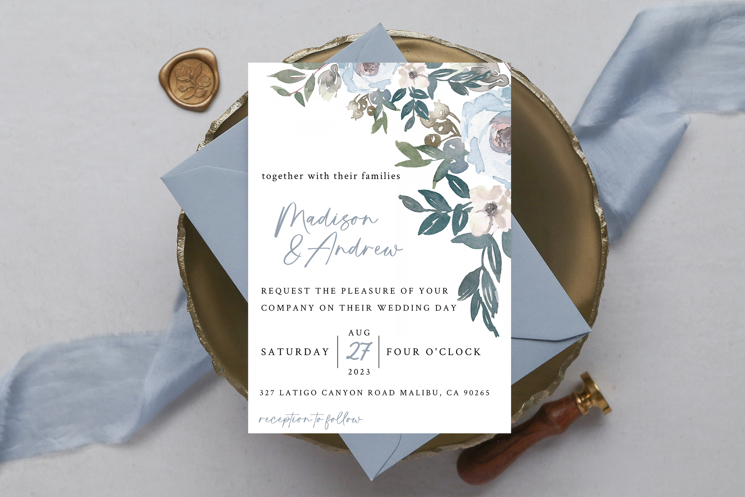 Invitations are printed digitally on 110-130# card stock. Available in Matte and Linen/Textured finish. All invitations, RSVP cards & Save The Dates include free plain white envelopes.
